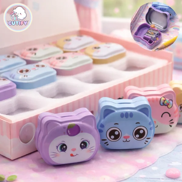Add a playful touch to your stationery with the Cat Shaped Sharp. Designed in an adorable cat-face style, this compact manual sharpener features a durable metal body with smooth printed cartoon expressions in pastel colors. Equipped with two sharpening holes and dual sharp steel blades, it easily sharpens both standard and jumbo pencils with precision. The flip-top lid opens to a built-in shaving compartment for mess-free use and easy cleaning. Small, lightweight, and practical, this cute sharpener is perfect for school bags, pencil cases, and office desks.