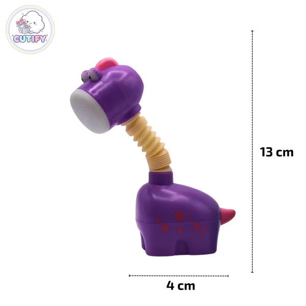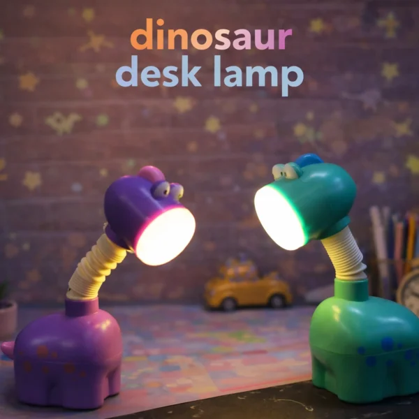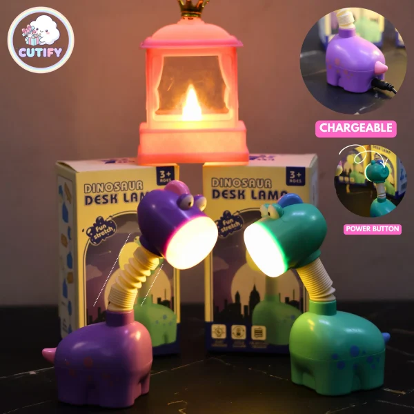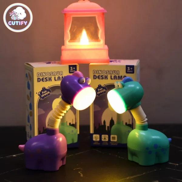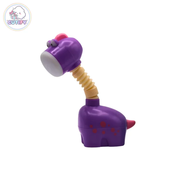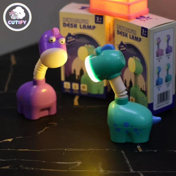 Make study time more fun with the Cute Chargeable Dinosaur Lamp. Designed in an adorable cartoon dinosaur shape, this compact LED desk light is perfect for kids and decorative setups. It features a flexible, bendable neck so you can easily adjust the light angle for comfortable reading or homework. Powered by a 250mAh rechargeable battery with 5V input, it offers convenient cordless use and can be charged via USB using a power bank, laptop, or adapter. With its soft, eye-friendly light and compact 13 cm size, it fits perfectly on desks, bedside tables, or even for travel. Available in green and purple, this cute lamp comes with a charging cable and packaging box.