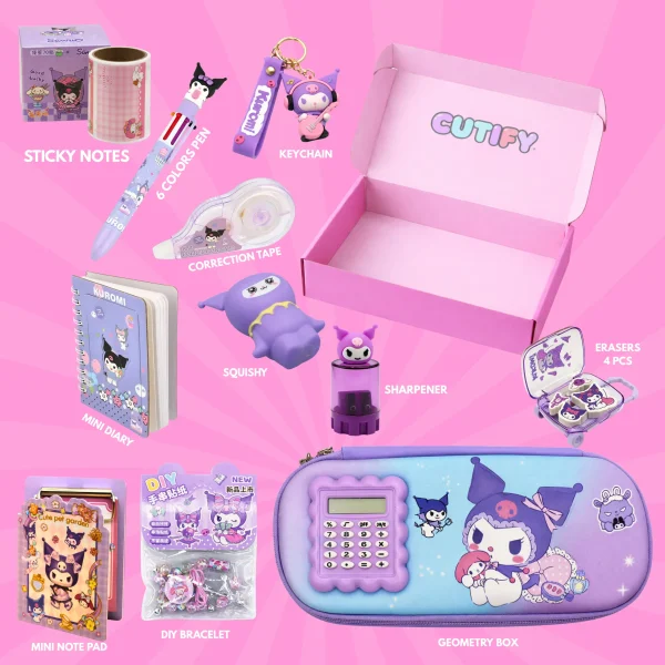 This complete Kuromi-themed collection delivers organization, creativity, and cute aesthetics in one premium Cutify branded package.