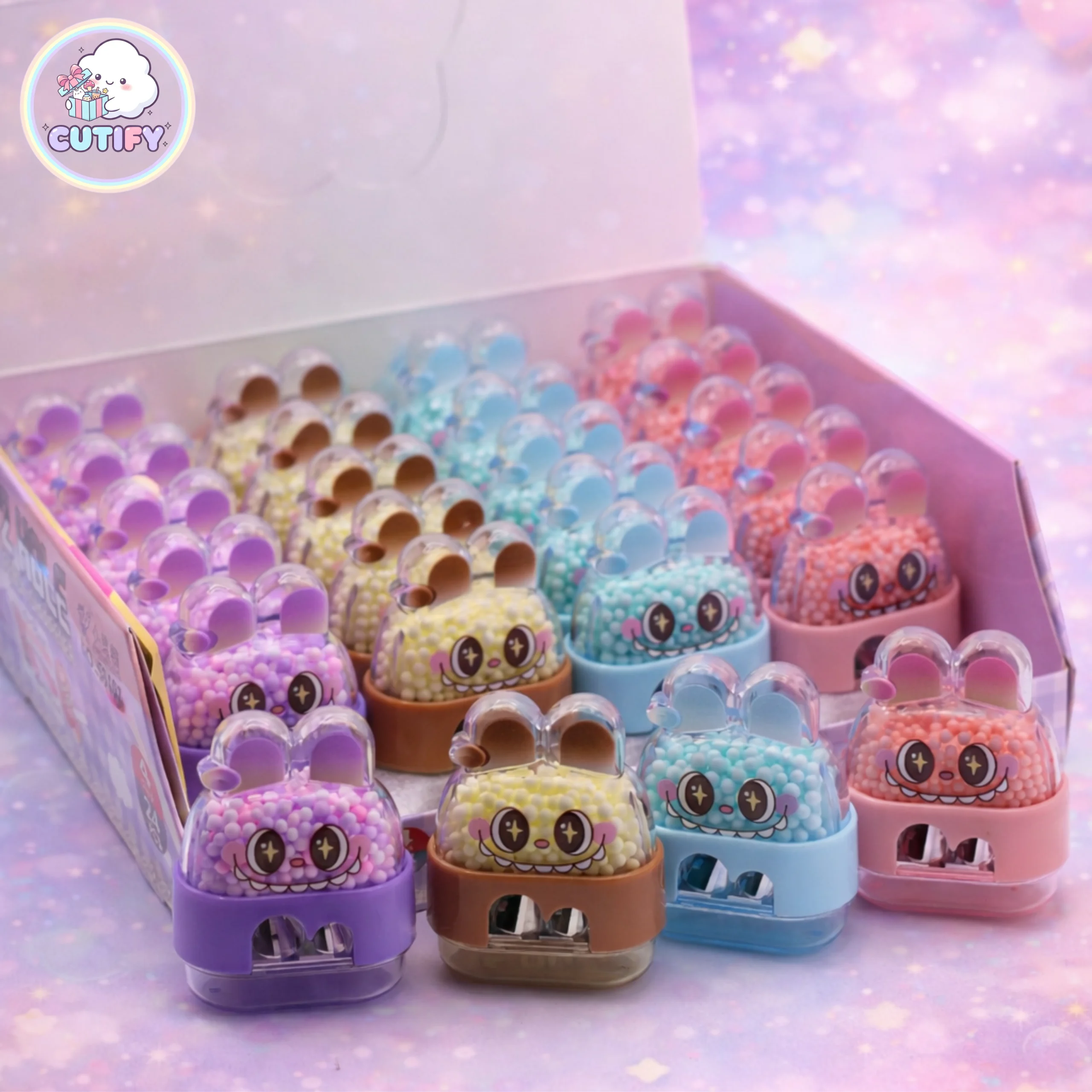 Make sharpening more fun with the Labubu Sharp, a playful character-inspired pencil sharpener designed for both style and practicality. Featuring a transparent dome filled with colorful decorative foam beads, it adds a collectible and eye-catching touch to your stationery. The double-hole design allows sharpening of both standard and jumbo pencils with precision, while the built-in shavings container keeps your workspace clean. Compact at approximately 6 cm in height, lightweight, and easy to carry, this durable plastic sharpener is perfect for school, office, or any stationery lover’s collection.